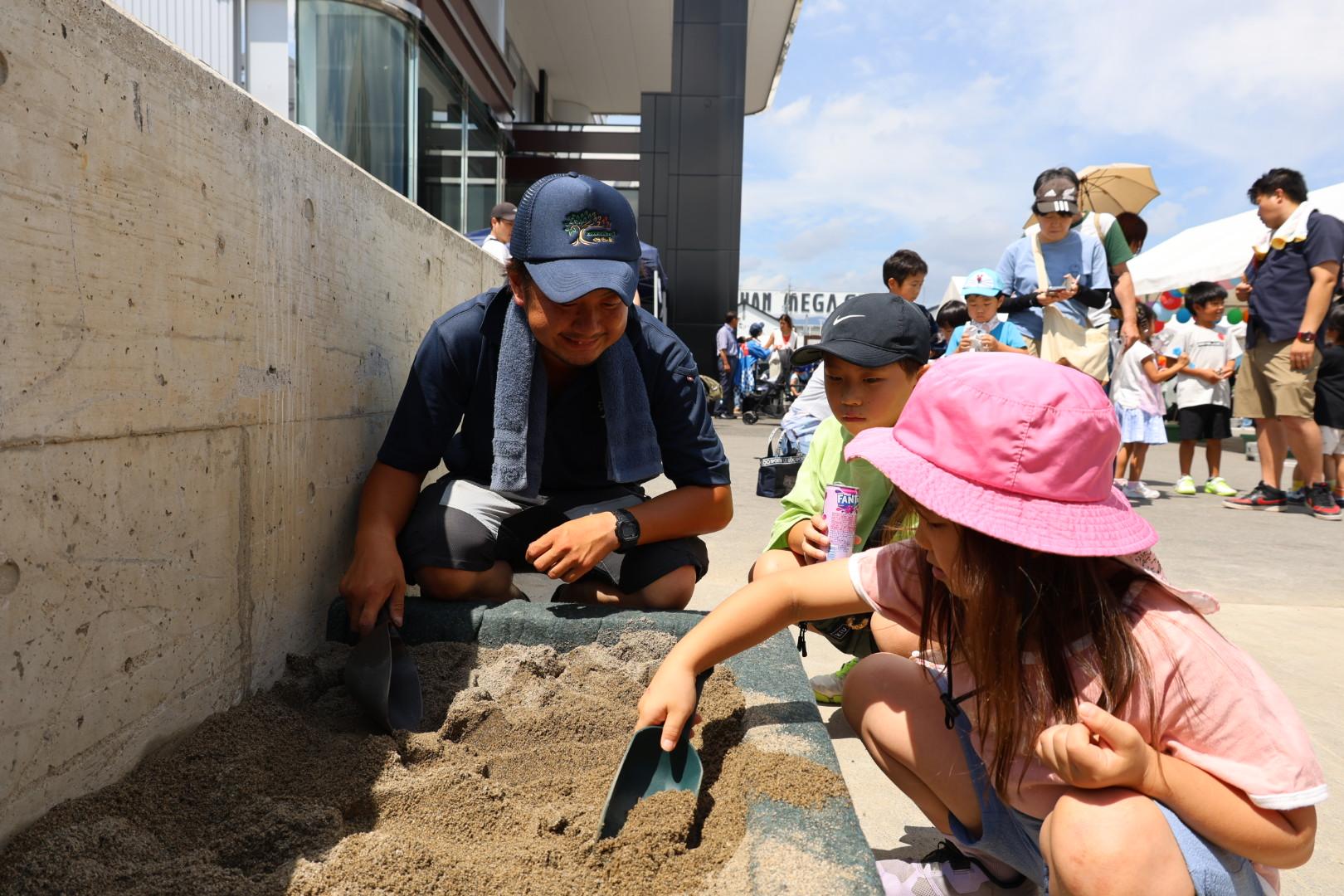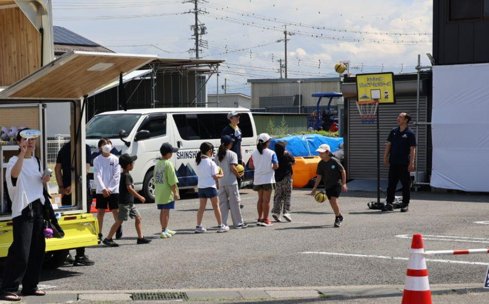 降旗興業さんが応援している「AC長野パルセイロ」や「信州ブレイブウォリアーズ」の選手たちにも協力してもらい、子ども向けのサッカー・バスケットボール体験を開催。