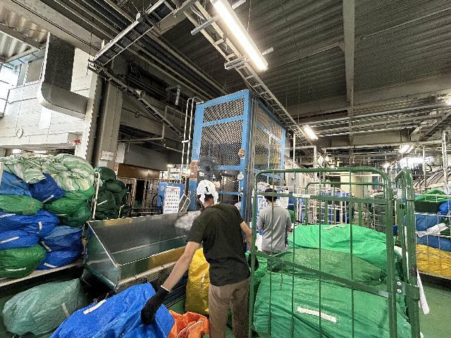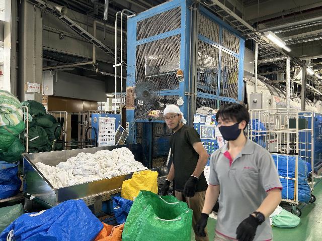 大型洗濯機を操作して、リネン類を機械に投入するお仕事です。