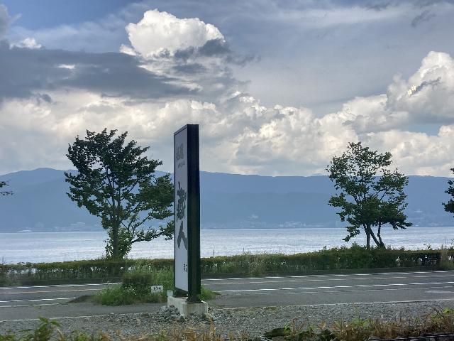 県道16号沿いにあり、諏訪湖を一望できるロケーションが魅力のお店です。