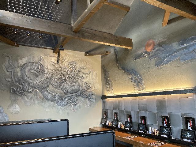 店内は清潔で、壁に描かれた手塗りの大きな龍の絵が自慢。