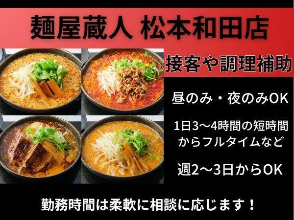 - 麺屋蔵人松本和田店での接客や調理補助