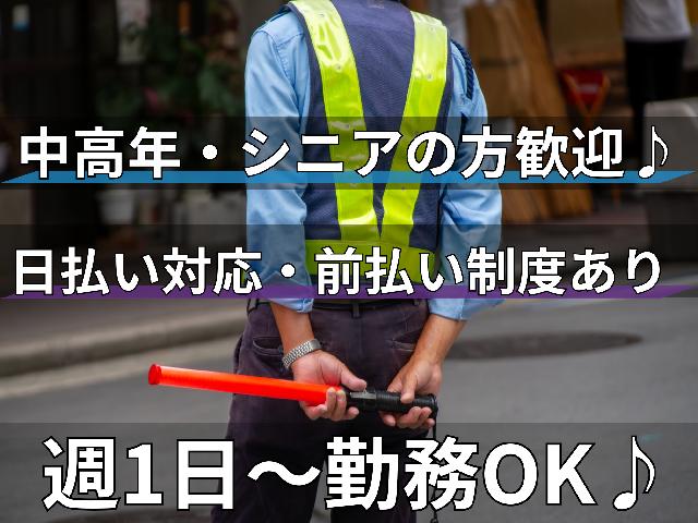 ✅日払い対応・前払い制度あり!【交通警備スタッフ大募集!】週1日~勤務OK!WワークOK!✅シフトは自己申告制でOK ✅勤務地へ直行直帰!✅中高年・シニアの方歓迎♪