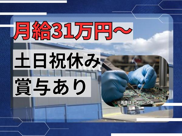 【産業装置の組立(ハンダ付け等の組立作業)】■経験者募集! 月給31万円~ 土日祝休み高収入!ながく安定して働きたい方!