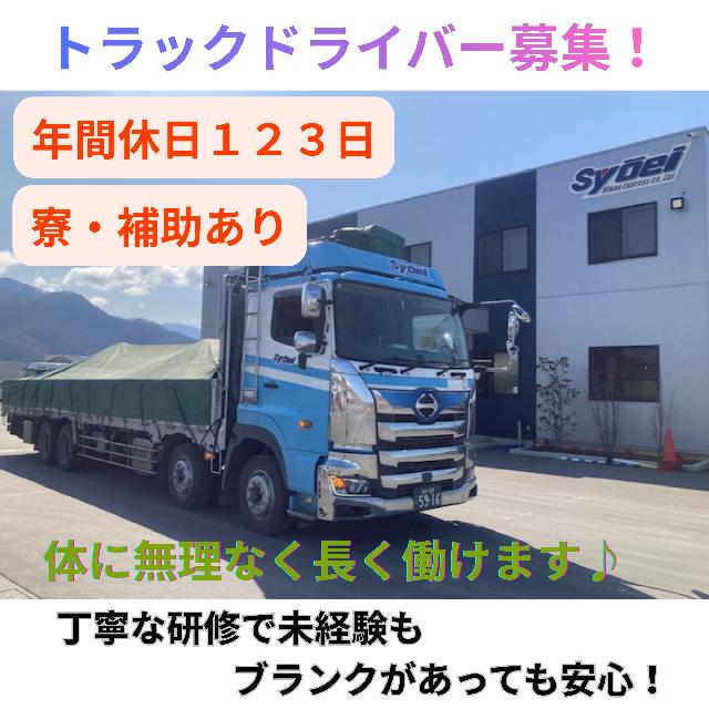 ✨年間休日123日♪《日勤のみの安定収入 4tトラックドライバー募集!》✅未経験OK ✅寮・家賃補助あり ✅女性も活躍中