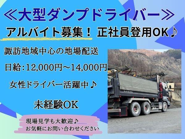 【砕石、産廃等の運搬をする大型ダンプ運転手(アルバイト)】 女性ドライバーも活躍中☆重労働なし☆土日祝はお休み、15時または17時に帰れます。