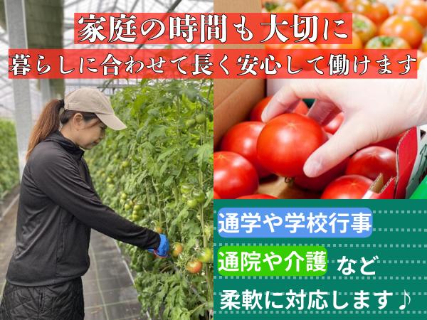 家庭も仕事もどちらも笑顔に♪ハウスでのお仕事で作業環境も良好♪力仕事も少なく男女問わず、年間を通して安定して働けます!【アメーラトマトの工場出荷作業補助】