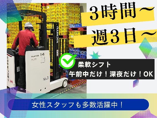 【パート・アルバイト】フォークリフト✅女性スタッフ多数活躍中✅一日3時間、週3日勤務〜OK!! ✅「食」に関わるこの先も安定した業界です♪